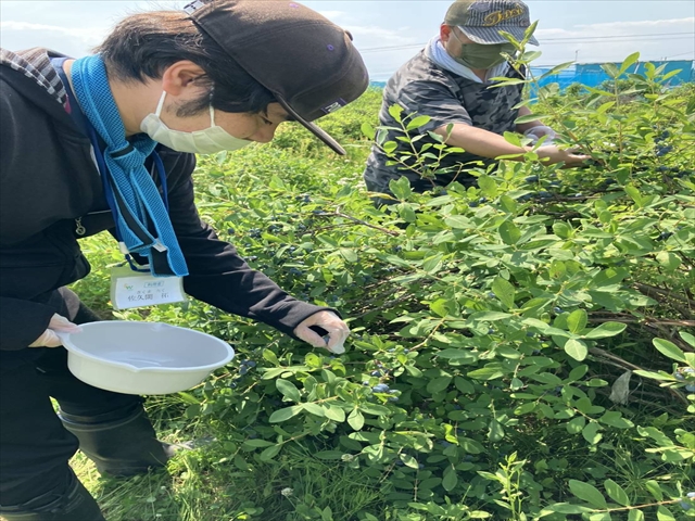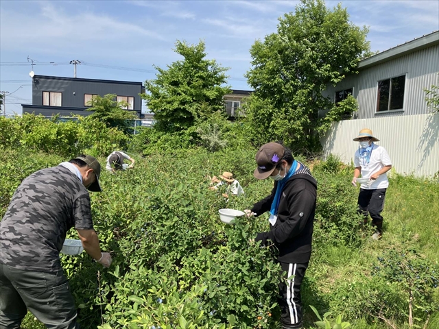 大正町にある小野寺農園のハスカップ畑でハスカップの収穫をしました。